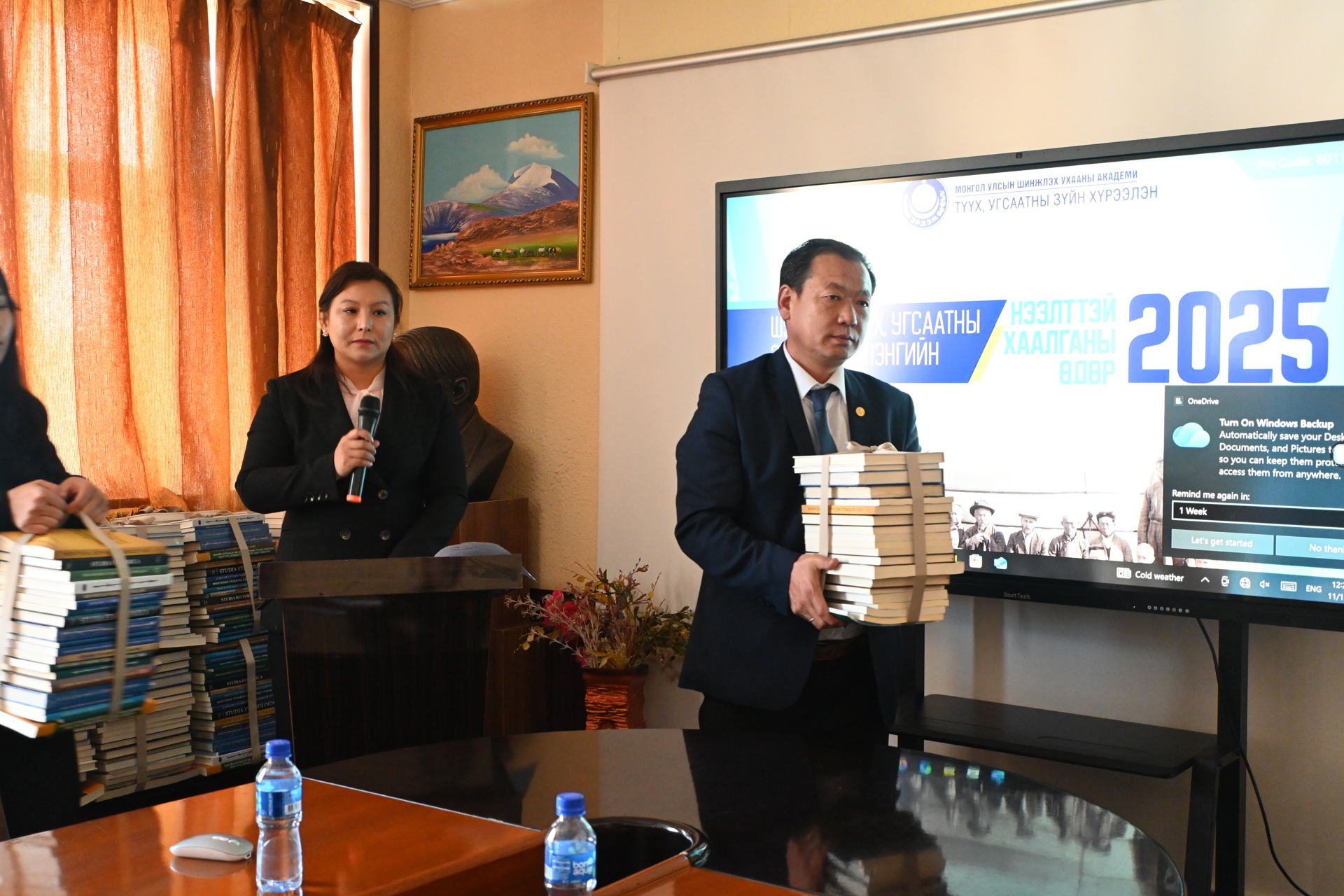 Өдөрлөгөөр 2025 онд тус хүрээлэнгээс эрхлэн хэвлүүлсэн 57 ном бүтээлийг товч танилцуулж, доктор (Ph.D), профессор Г.Мягмарсамбуугийн бичсэн “Дэлхийн хоёрдугаар дайны төгсгөл чөлөөлөх дайн 1945 он”; доктор (Ph.D) Г.Алтансүхийн “XII зууны монголчуудын нийгмийн байгуулал” нэгэн сэдэвт зохиолын шүүмж, хэлэлцүүлэг өрнүүлэв. Мөн доктор (Ph.D), Л.Ганбат “Монголын эзэнт гүрэн: Түүх, соёлын өв” лекцийг оюутан, сурагчдад зориулан уншлаа.