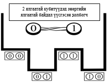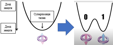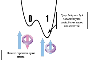 1. Кубит нь суперпозици (0 ба 1) төлөвт байх бөгөөд тус бүрийг харгалзах соронзон оронтай байхаар кодолно. Аннеалинг хийгдсэний эцэст кубит бүр 0 эсвэл 1 гэсэн уламжлалт бит хэлбэрт шилжих болно.